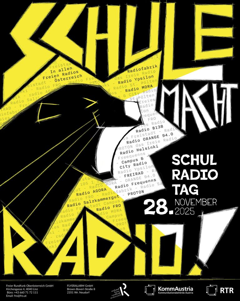 Der Schulradiotag 2019 ist auf allen Freien Radios in Österreich am Freitag, den 29. November 2019 von 9 - 17 Uhr on Air zu hören.
